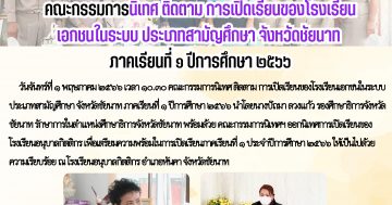 6 มิถุนายน 2566คณะกรรมการนิเทศ ติดตาม การเปิดเรียนของโรงเรียนเอกชนในระบบ ประเภทสามัญศึกษา จังหวัดชัยนาท ภาคเรียนที่ 1 ปีการศึกษา 2566